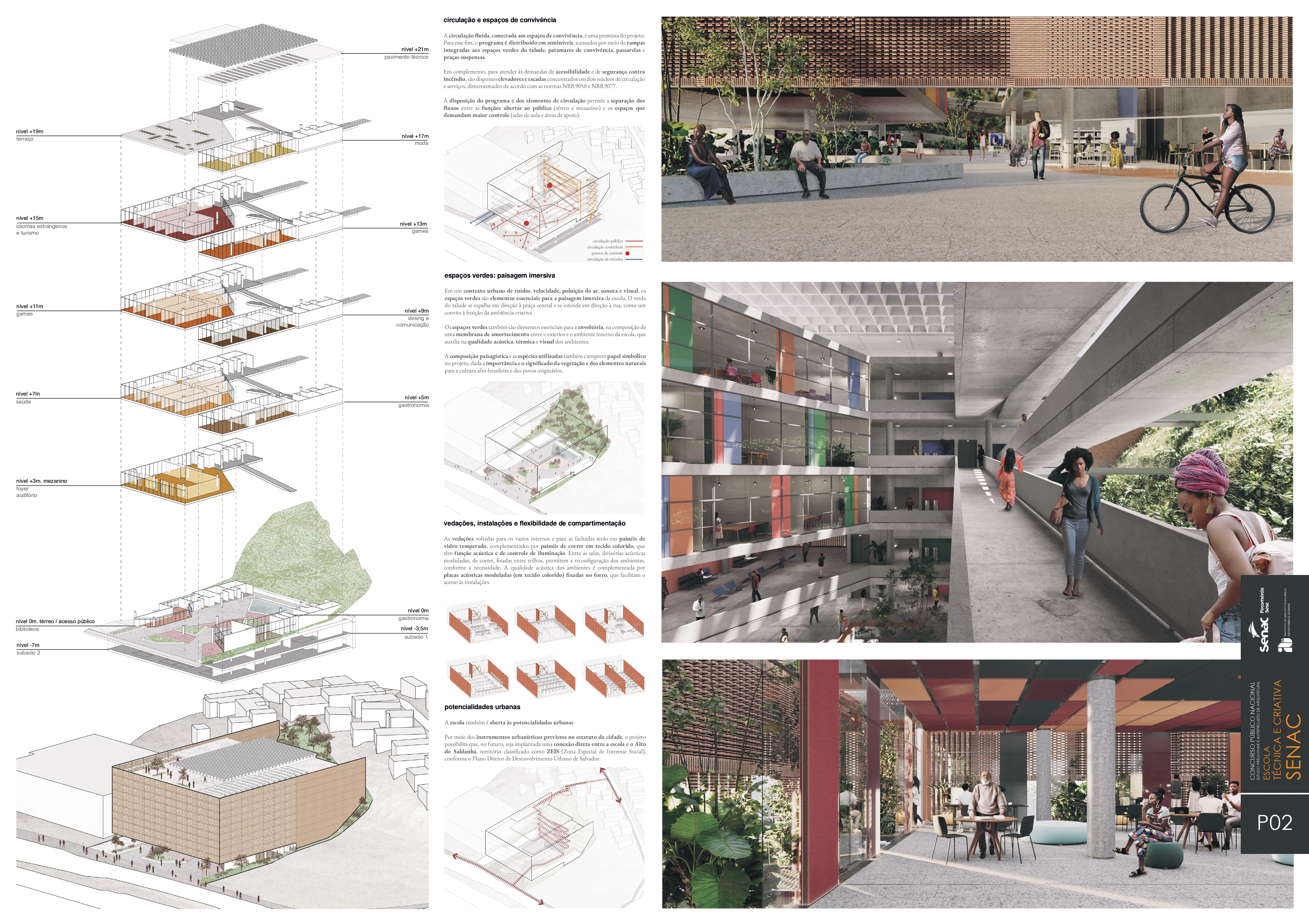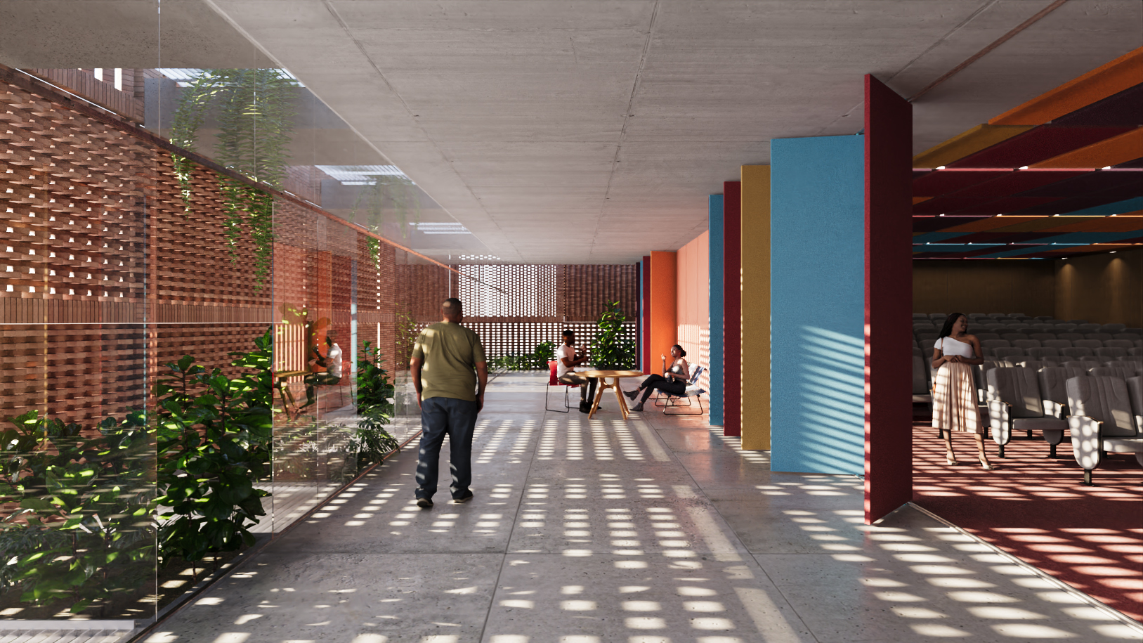 Propõe-se um ambiente de convergência entre território, espaço e paisagem. A escola como uma extensão da cidade, um espaço de revelação, carregado das texturas, cores, espacialidades e dinamicidades que expressam a resiliência e a diversidade cultural da Bahia, suas origens e potencialidades.