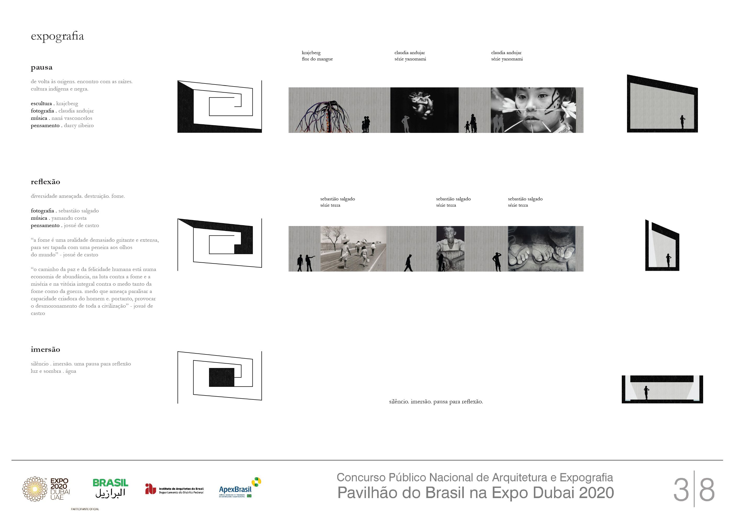 mais do que um momento de celebração, o que se propõe para a arquitetura e a expografia do pavilhão é uma pausa para reflexão
