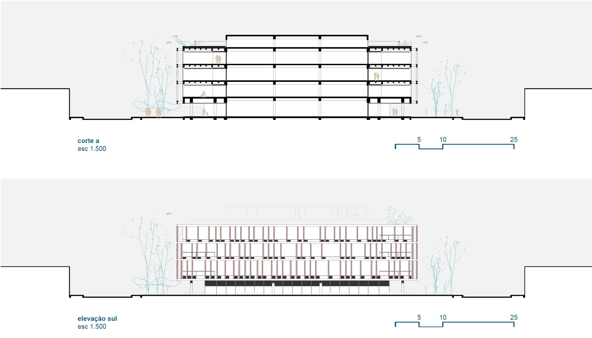 Todos os ambientes de permanência terão iluminação natural e alta inércia térmica. Todas as fachadas são protegidas por painéis (fachada ventilada), cujo espaçamento, orientação e dimensão variam em função da orientação solar das respectivas fachadas.